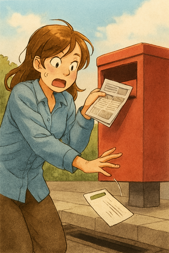 郵便ポストの前で、ふと手からこぼれ落ちた一枚のはがき。